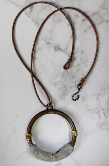 MEASUREMENTS... pendant width 2.75in (7cm) height 3in (7.6cm) leather cord length 24in (61cm)